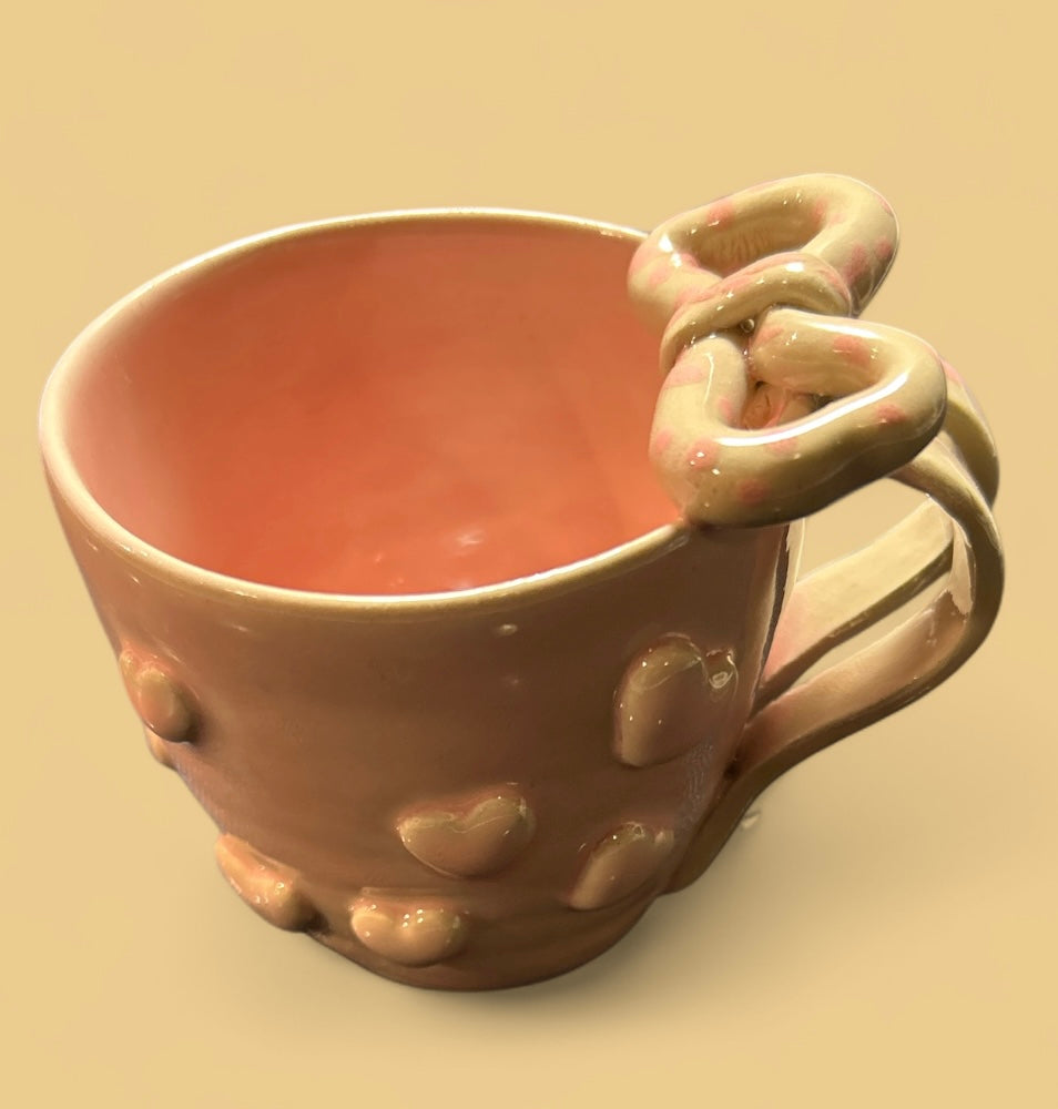 Lille krus i smukke farver, dekoreret med hjerter og en sløjfe på hanken