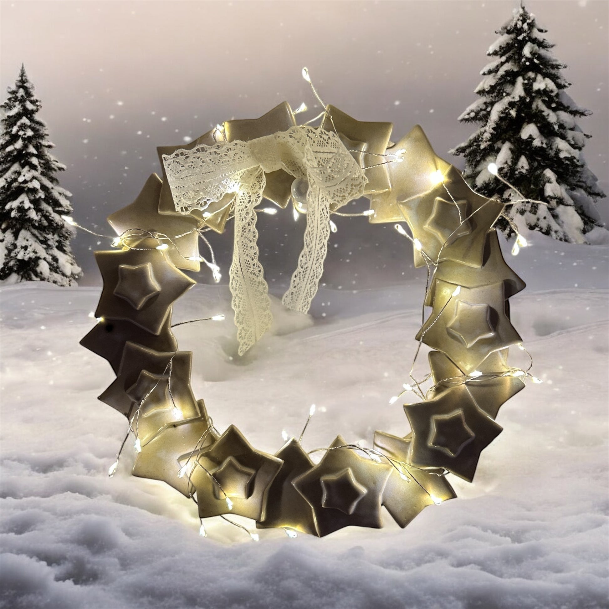 Keramik stjerne ophæng incl lyskæde og sløjfe . Stjernerne er glaseret med en smuk lys farve